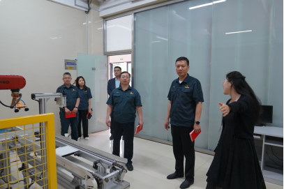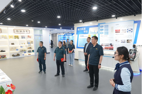 山推(德州)工程有限公司党委副书记刘晓东一行到校后,在公司党总支书记王桂伟的带领下参观了公司20号楼实验室、公司第二课堂教育体验中心。