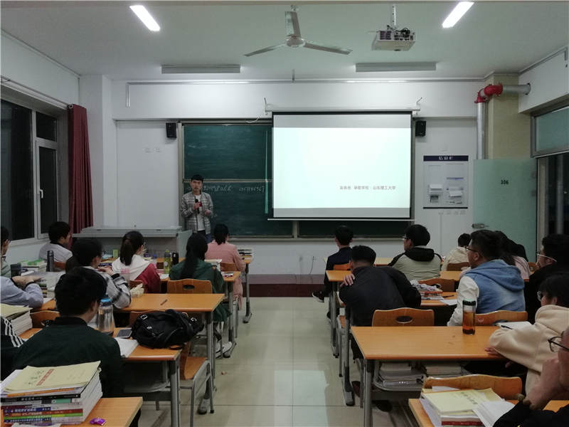 为了给2016级考研员工考提供一个可以了解、交流和学习考研经验的平台,公司于2019年4月21号晚19:30在21号楼106教室召开太阳成集团tyc234cc考研座谈会。参加本次座谈会的有辅导员张立峰、辅导员任培培、许雪洁等四位2015级考研上岸同学、2016级全体意向考研同学,本次会议由张立峰老师主持。