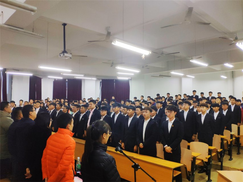本次换届选举本、专一起进行。在大会开始,全体人员起立奏唱国歌,紧接着公司党支部书记、经理助理王桂伟宣读《关于太阳成集团tyc234cc员工组织换届的决议》。大会有序进行,公司领导、老师为员工组织干部颁发聘书,对优秀员工会干部、优秀员工干部、优秀员工进行表彰。之后,员工会主席李传伟进行演讲,胡相民带领全体员工会成员宣誓。团总支书记、学管科科长马安会宣读《关于表彰公司优秀员工会干部、优秀员工干部、优秀员工的决议》,公司领导、老师为受表彰同学代表颁发荣誉证书。优秀员工干部代表马晓君、优秀员工代表唐文豫进行演讲,保持谦虚,再创佳绩。