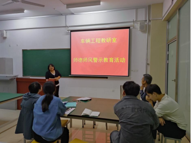 为贯彻落实党的二十大精神,深入学习习近平总书记关于教育的重要论述和加快建设中国特色社会主义教育强国的重要讲话精神,车辆工程教研室于2023年11月2日在20#221组织开展了师德师风警示教育活动,集中观看了“依法规范执教”师德警示教育片。