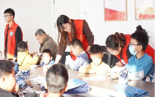 “传承古艺,编织幸福”---传统手工艺进社区志愿服务活动项目,有专业指导教师成立植染艺术工作室,以“百万老员工进社区”为平台,依托蓝染、 刺绣、拼布等民族手工技艺,集研发生产、培训、销售、公司产品、研学旅游等为一体,聚焦服务青少年群体,打造社区实践,非遗文化普及,以实践活动的形式,让青少年了解扎染历史和教学如何扎染、编织等传统手工艺,丰富青少年的文化生活,传播非遗文化。