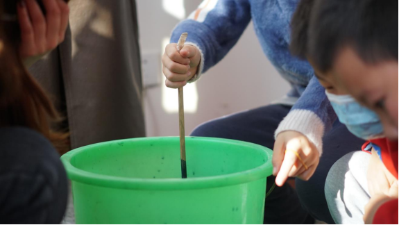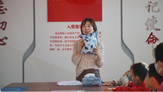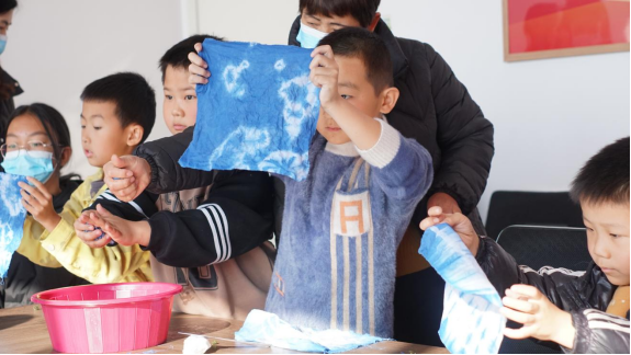 活动过程中,我们将优秀扎染作品向大家展示,通过件件艺术品在孩子与家长手中传递,递出了温情,递出了非遗文化传承的责任感、使命感。通过老师向大家介绍扎染的工艺历史、艺术特点以及制作工艺等,将大家带入扎染的世界。介绍中孩子们积极回应老师,展现出乐学乐教的良好成效。待讲解完毕,他们充分发挥想象力,将自己手中的白色布料依照个人喜好进行折叠、捆扎,再将扎好的布放进染料里浸泡、染色、晾干……最后,一个个独特的扎染工艺品在孩子们的手中诞生,孩子们兴奋地互相展示自己的作品,共享着这次奇妙的非遗探索之旅。