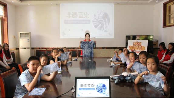 活动伊始,志愿者借助多媒体向小朋友们系统介绍蓝染的历史渊源和制作步骤,还特意拿出蓝染泥,让孩子们近距离观察,感受其因发酵而散发出的特殊气味。随后,小朋友们围坐在一起,孩子们在志愿者指导下,认真学习折叠、捆扎、浸染手法,亲手将手中的白布变成美丽的工艺品,在体验扎染工艺的过程中,真切感受非遗文化之美。活动现场充满了欢声笑语,气氛温馨和谐。